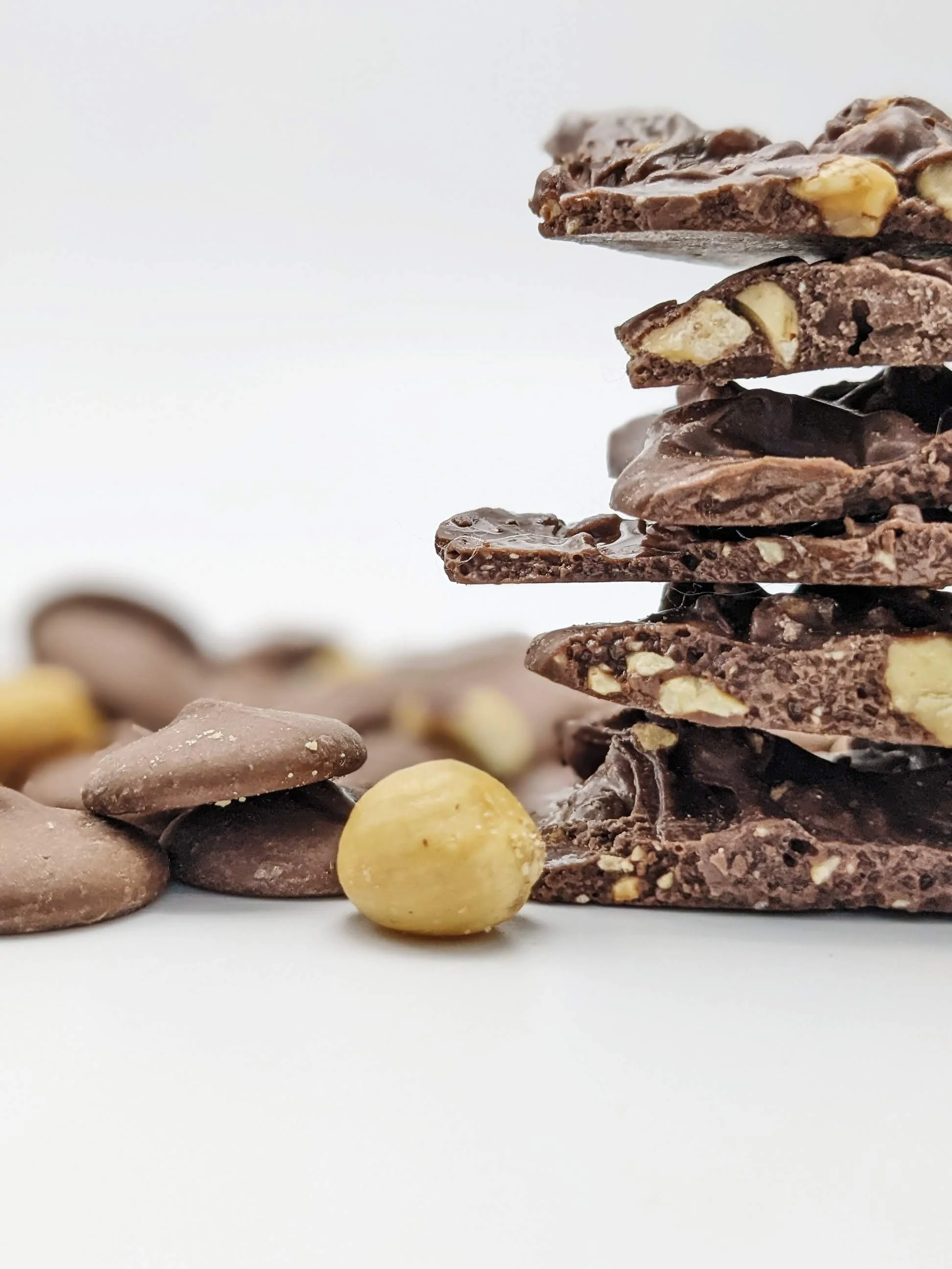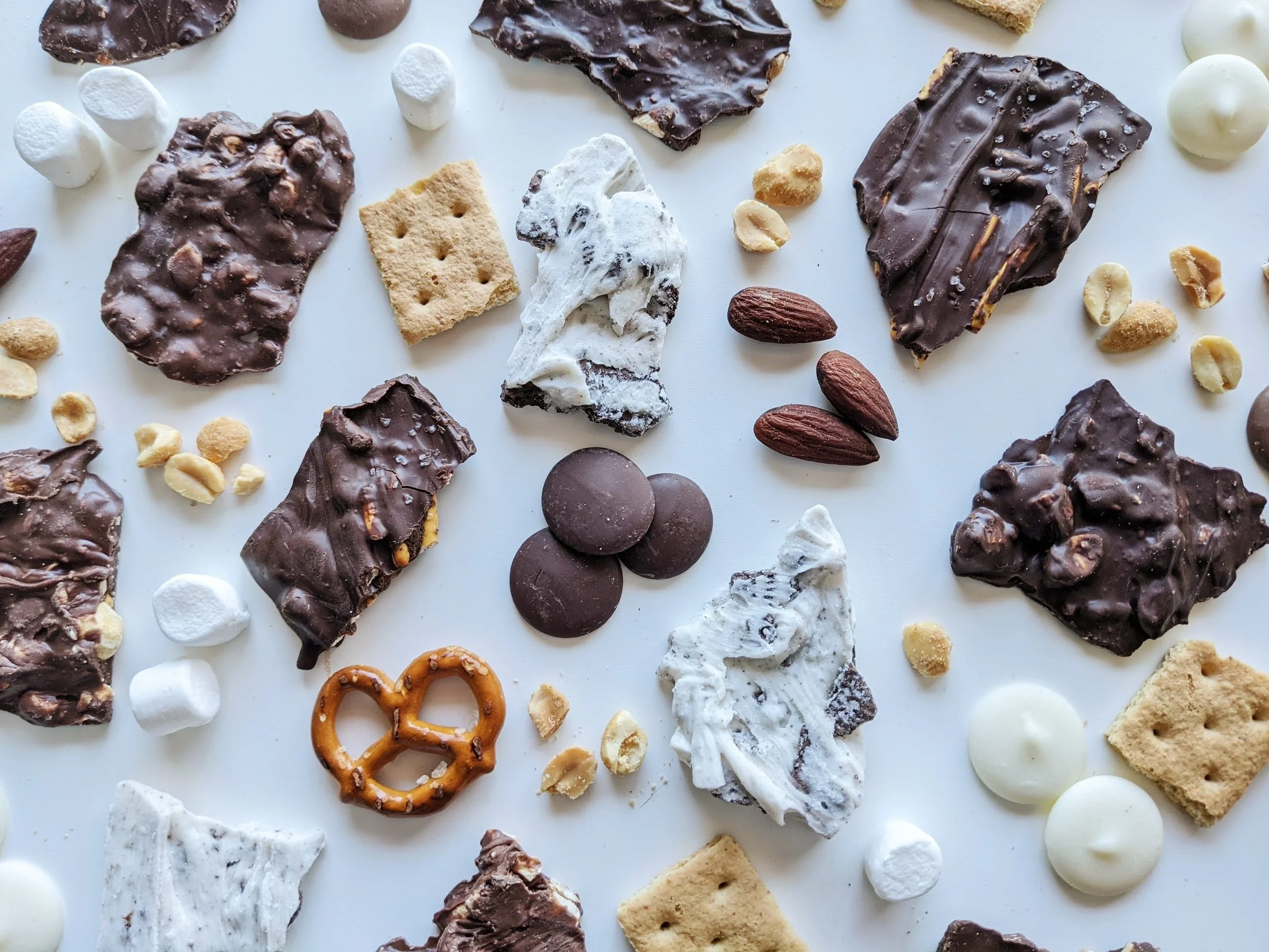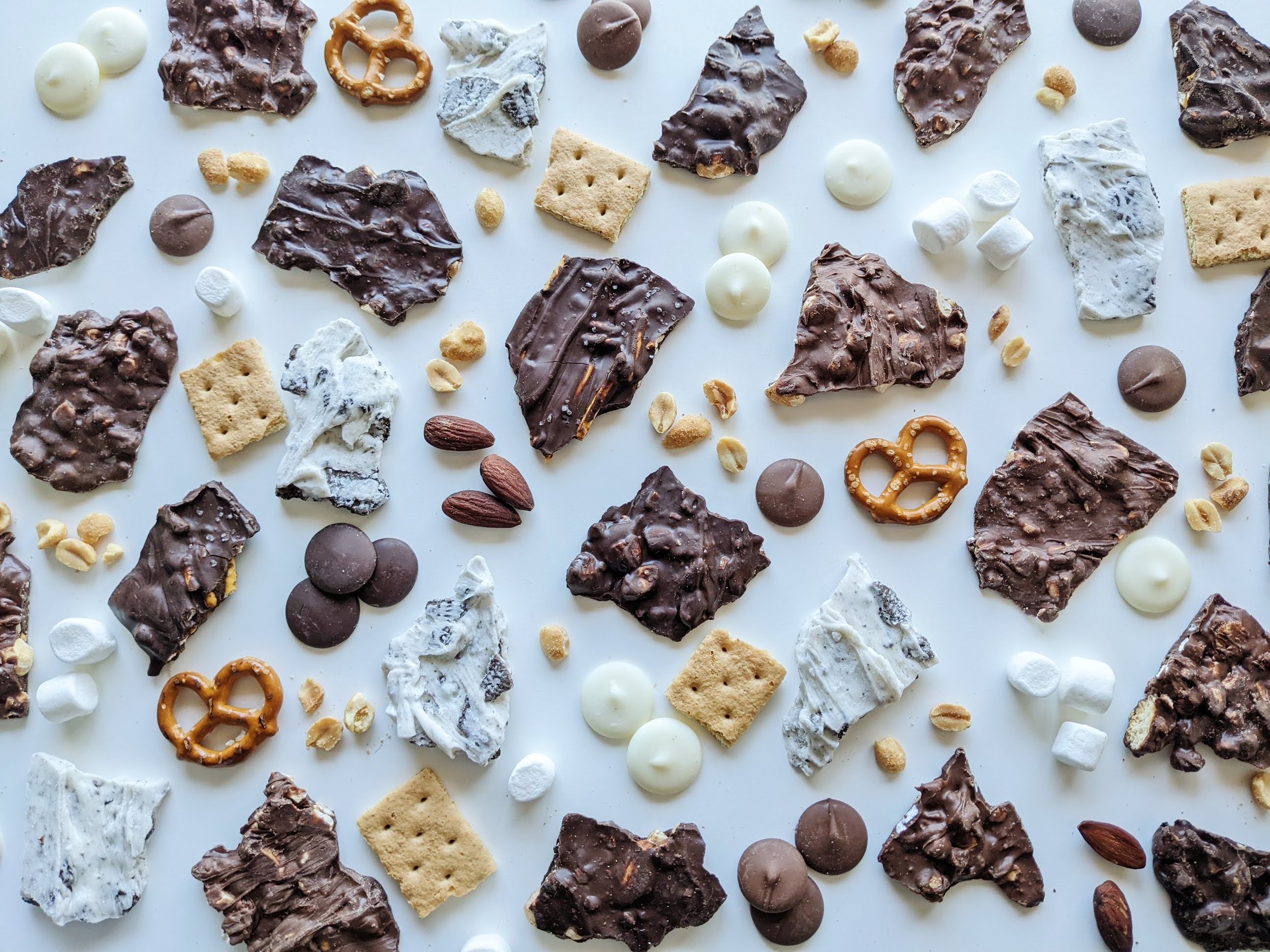 Flatlays + Product Photos for a Gourmet chocolate bark company.