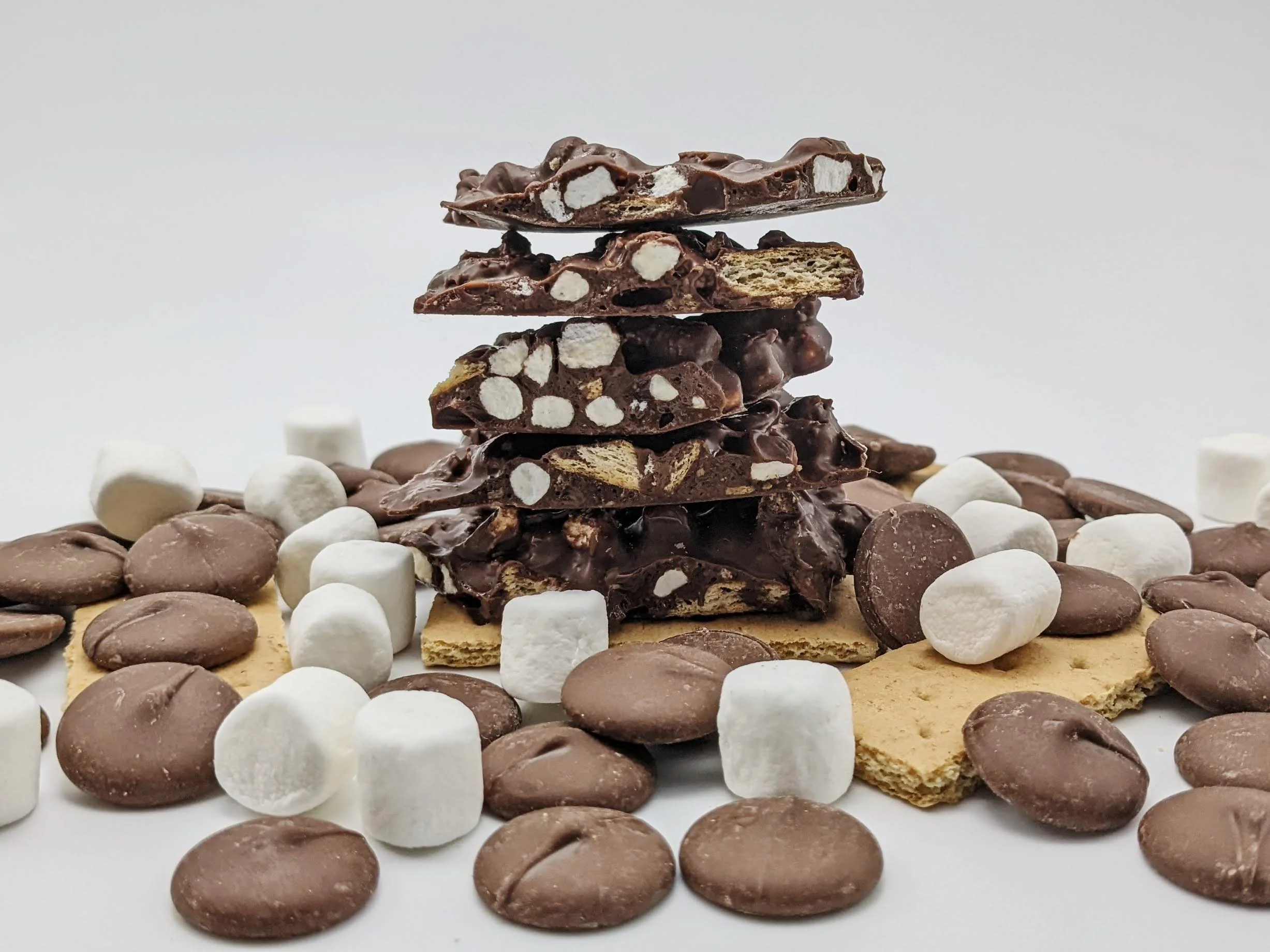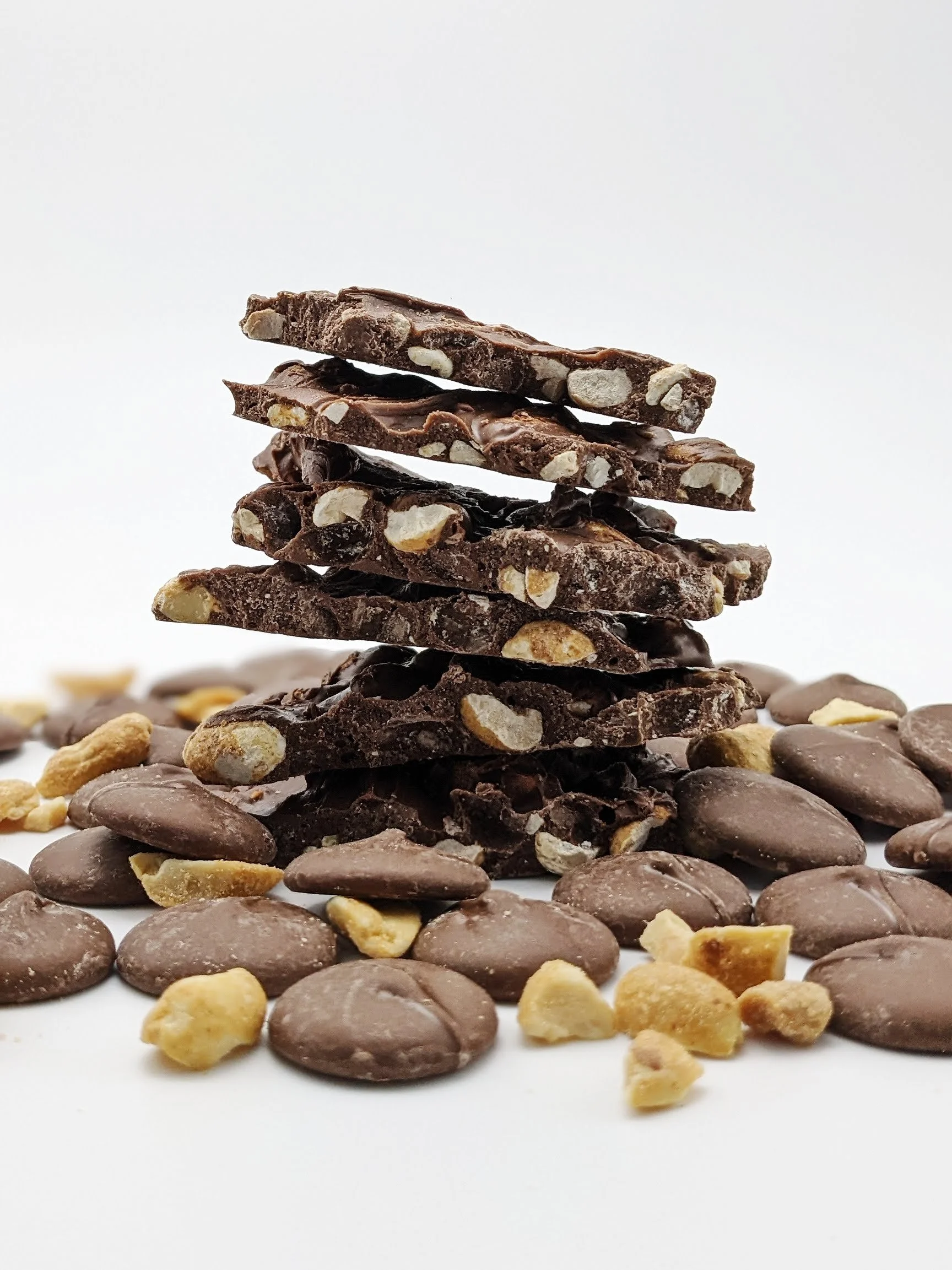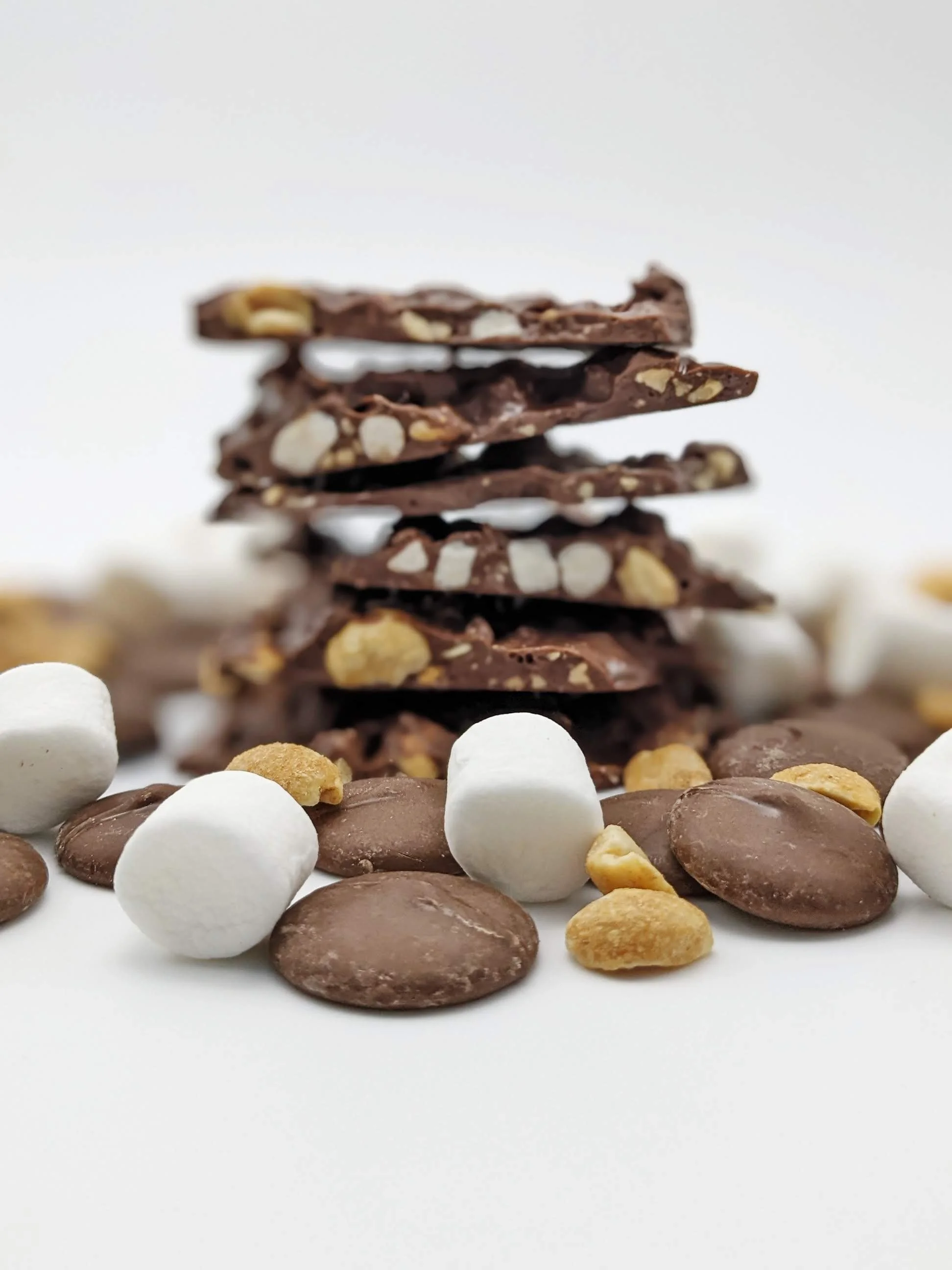 Flatlays + Product Photos for a Gourmet chocolate bark company.